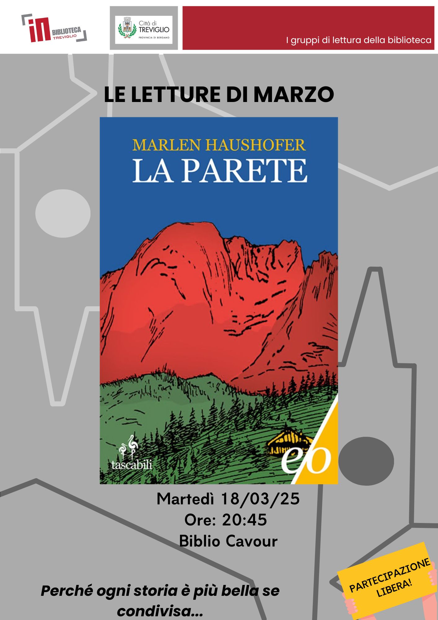 Protagonista dell'incontro sarà il libro "La parete" di Marlen Haushofer.