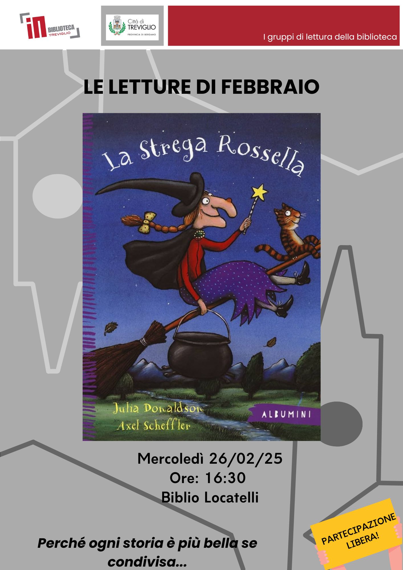 Il gruppo di lettura Baby Book Club affronterà il libro di Donaldson Julia "La strega Rossella", un classico della letteratura d'infanzia
