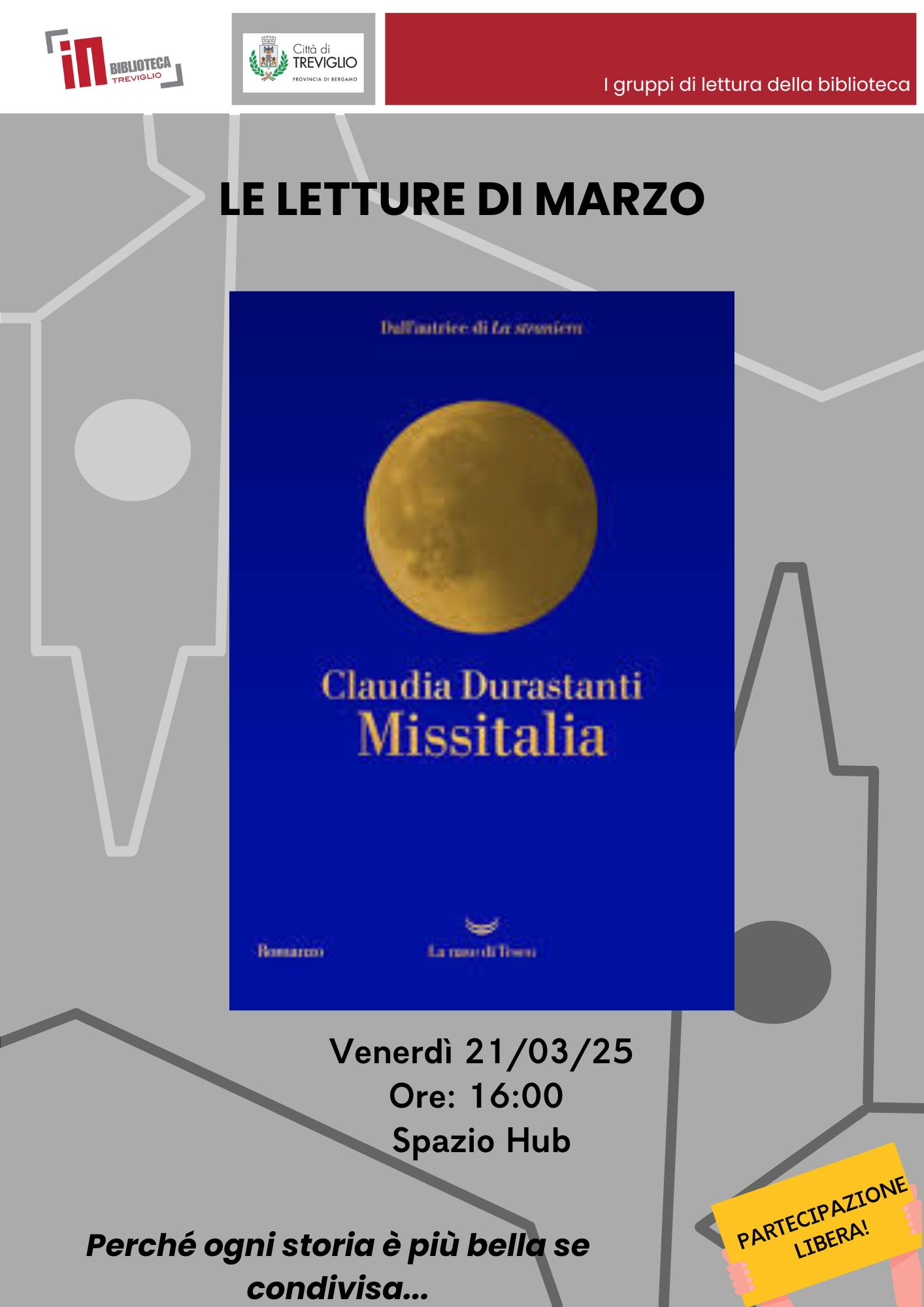 Il gruppo di lettura del venerdì si riunisce in biblioteca per commentare il libro "Missitalia" di Claudia Durastanti.