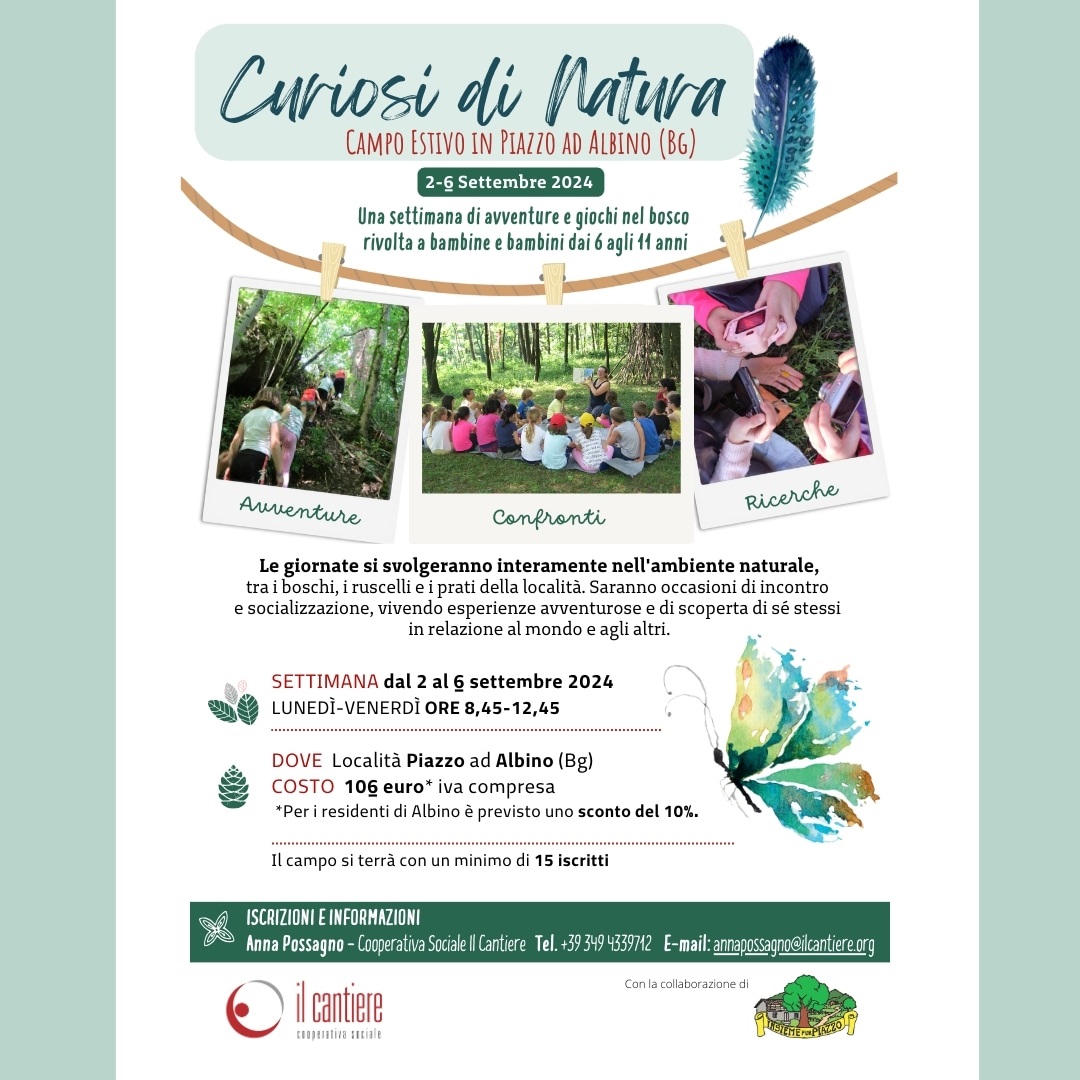 È in programma dal 02 al 06 settembre il camp estivo “Curiosi di Natura” presso la località Piazzo ad Albino.