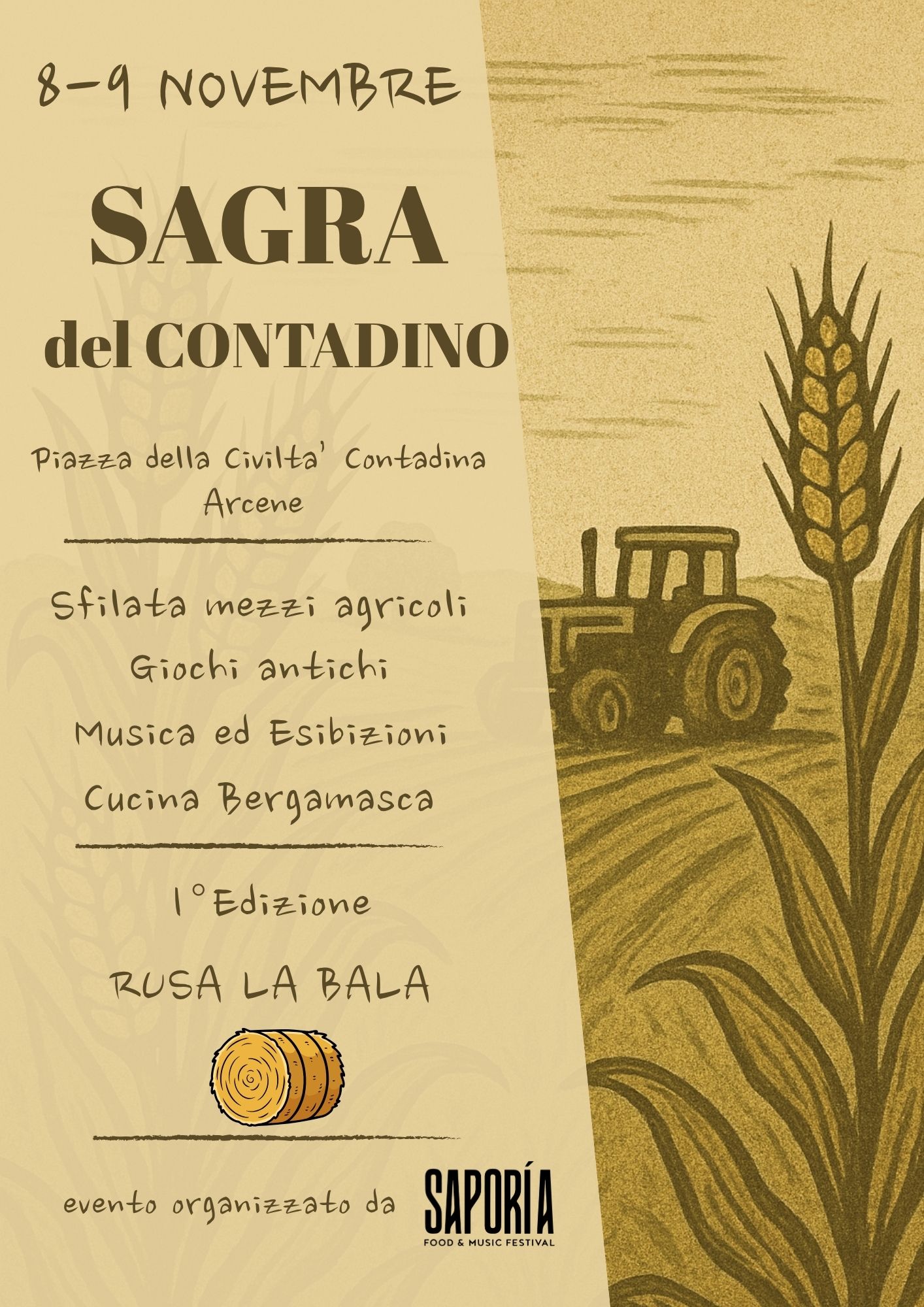 Saporìa - Food&Music Festival organizza, in collaborazione con il Gruppo Alpini e il Gruppo Podistico di Arcene, la prima edizione della Sagra del Contadino.