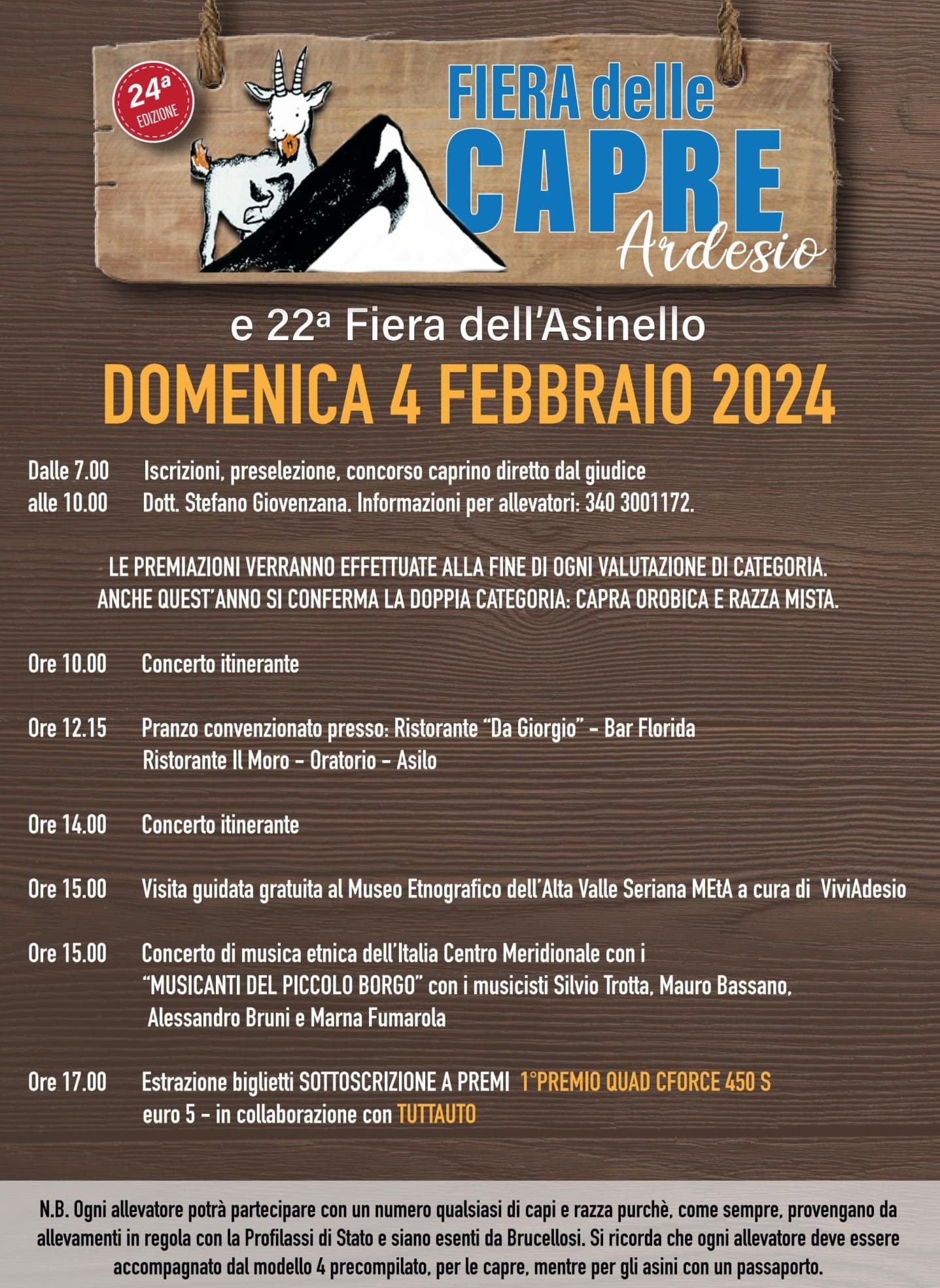 - Alle 7: iscrizioni, preselezione, concorso caprino.