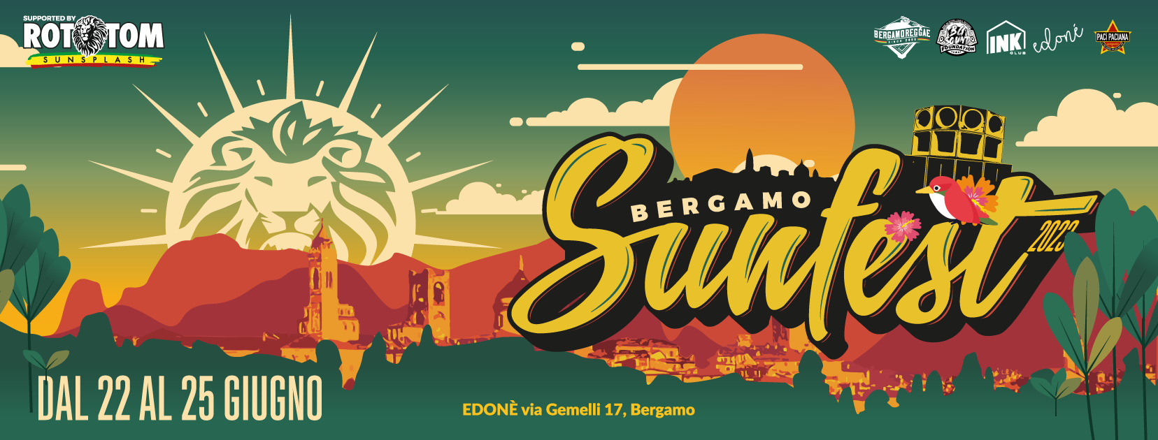 Per la sua quindicesima edizione, il Bergamo Sunfest sarร ospitato all'Edonรฉ Bergamo e il suo slogan sarร "Concrete Jungle": durante il festival ci immagineremo una cittร verde, sostenibile e piena di spazi aperti dove scappare dalla giungla di cemento.