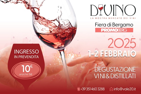 Sabato 1 e domenica 2 febbraio, la Fiera di Bergamo apre le porte alla nuova edizione di Divino, la Mostra Mercato dei Vini che promette un'esperienza unica per tutti gli appassionati di enogastronomia. Un weekend imperdibile all'insegna del buon gusto, dove si potrà scoprire e acquistare una selezione di vini pregiati provenienti da rinomate cantine italiane e internazionali.