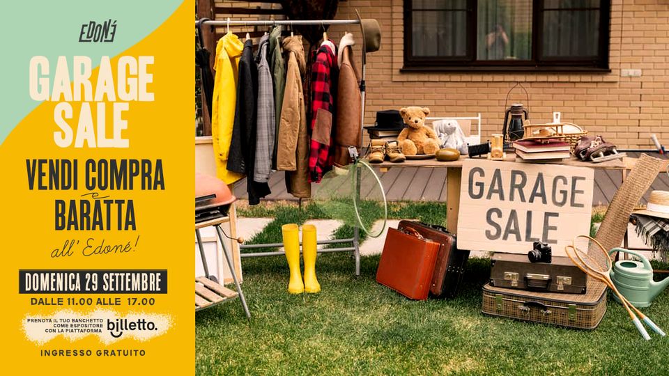 Non perdete il Garage Sale! Troverete di tutto: abbigliamento vintage, libri, oggetti d'arredo e molto altro! Venite a fare affari e a dare una seconda vita alle vostre cose. Diventate espositori!