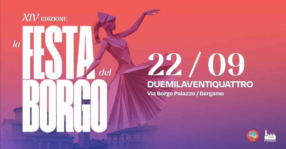 Borgo Palazzo si anima per la sua Festa: Domenica 22 settembre, il cuore storico di Bergamo torna a pulsare con la XIV edizione della Festa del Borgo. Un'intera giornata dedicata allo shopping, alla musica e al divertimento, con oltre 200 botteghe aperte e un ricco programma di eventi. Torna la manifestazione che celebra e promuove lo spirito di uno dei quartieri più storici di Bergamo.
