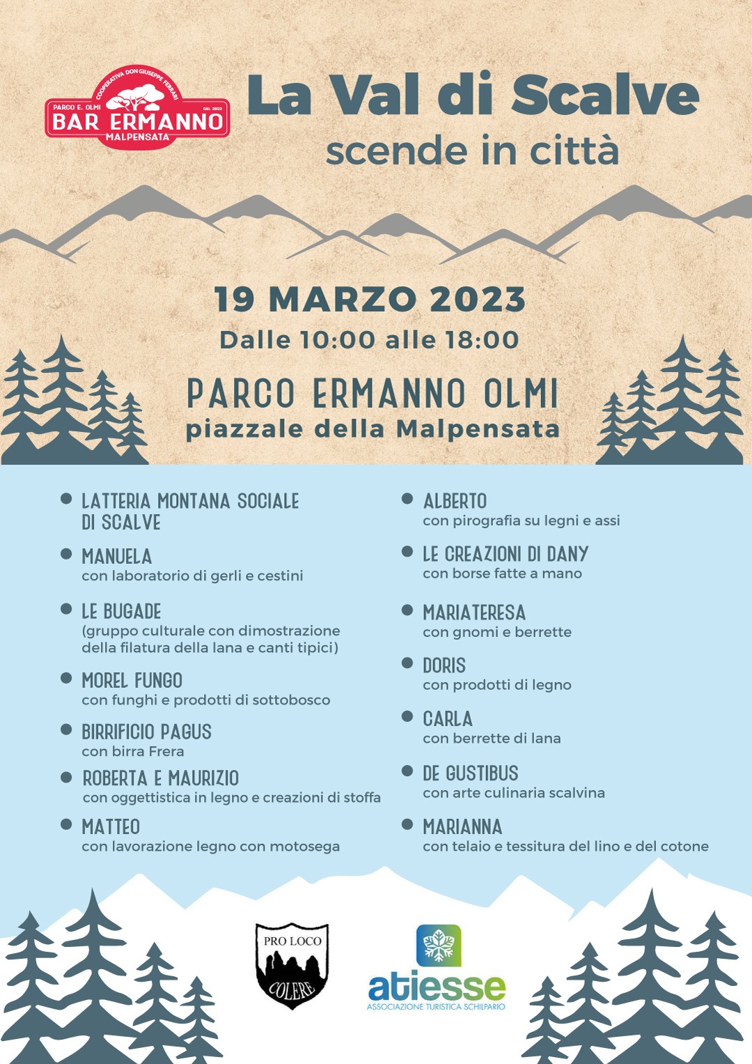 La Val di Scalve scende in Piazza, in collaborazione con la cooperativa Don Bosco, la proloco Colere e Altiesse, si terranno una serie d'attività a tema: dal laboratorio artigianale dei cestini a attività di tessitura del lino e del cotone.