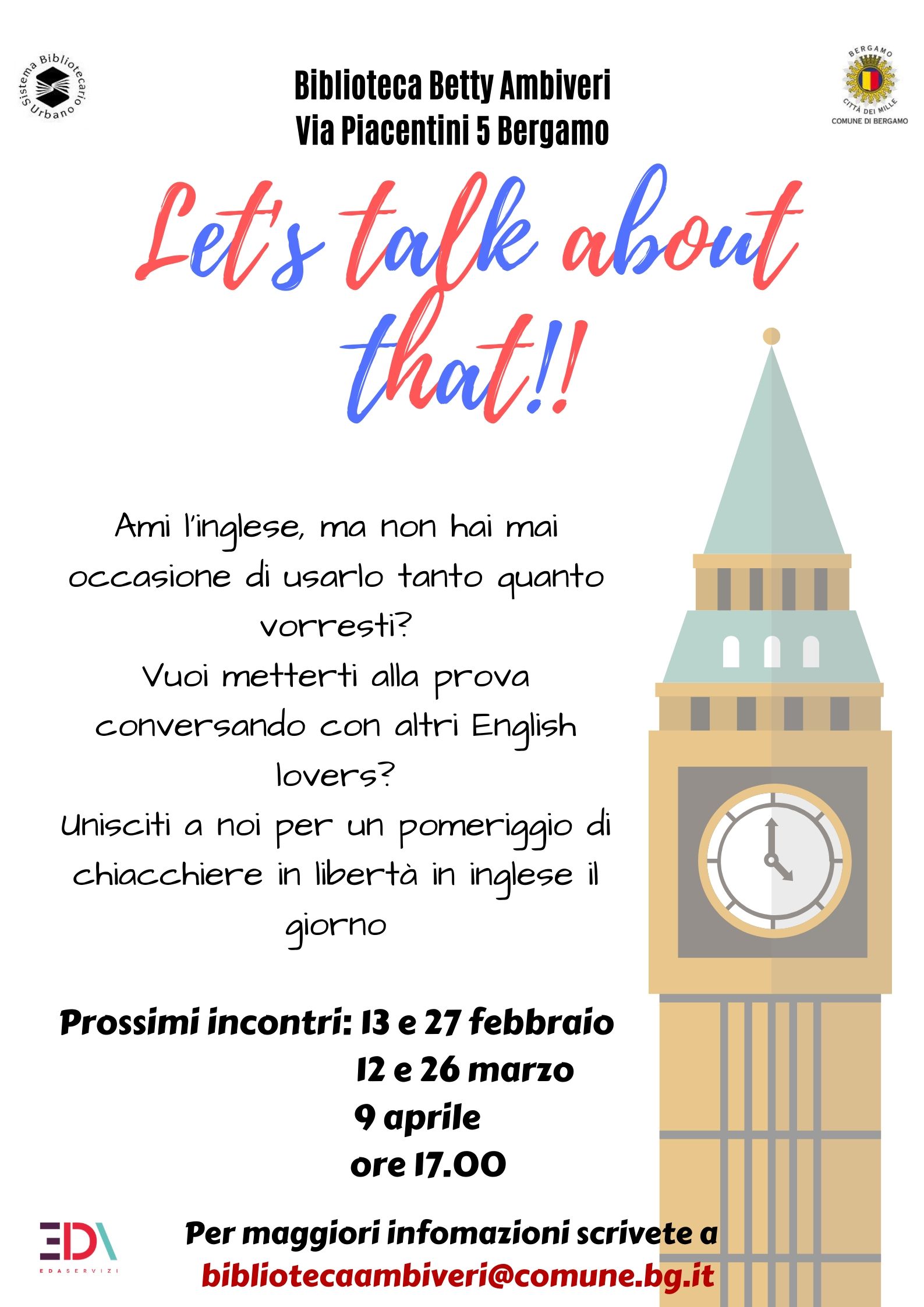 Presso la biblioteca Betty Ambiveri troverai altri amanti dell'inglese per un pomeriggio di chiacchiere in libertà!