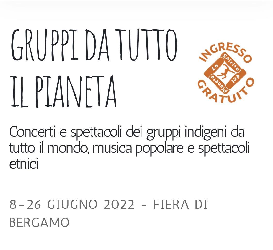 Dall'8 al 26 giugno, presso la Fiera di Bergamo, avrà luogo il festival della condivisione tra i popoli con concerti e spettacoli dei gruppi indigeni da tutto il mondo, musica popolare e spettacoli etnici.