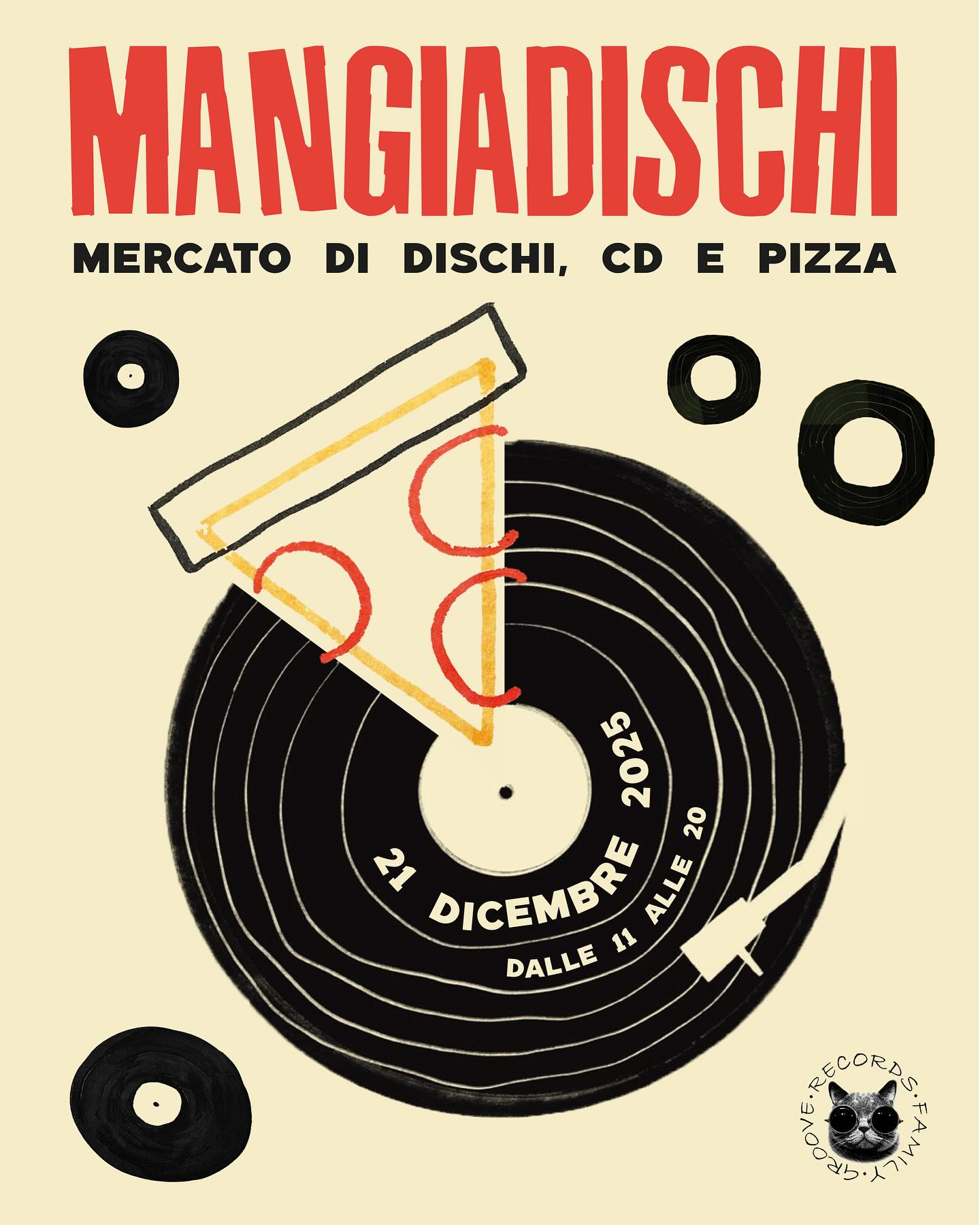 Un mercatino dedicato al mondo della musica e della pizza, con espositori di CD e vinili e pizza disponibile per tutta la giornata.