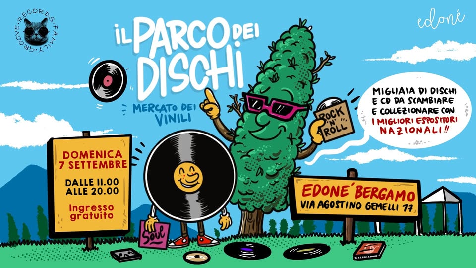 Se la passione per la musica e per i dischi vi elettrizza e continua a darvi energia, questa è la giornata per voi! Il parco di Edoné - nel suo spazio estivo con zona ristoro e food - ospita la ormai tradizionale FIERA DEL VINILE con migliaia di dischi e CD, da scambiare e collezionare, con i migliori espositori nazionali: appuntamento domenica 7 settembre, dalle 11 alle 20 con il Parco dei Dischi.