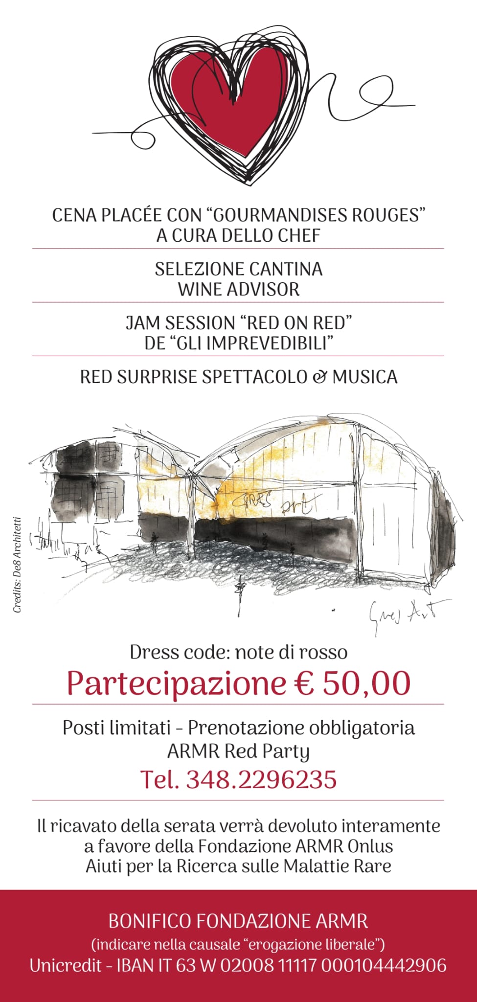 Il ricavato della serata verrà devoluto interamente a favore della Fondazione A.R.M.R. - Aiuti Ricerca Malattie Rare