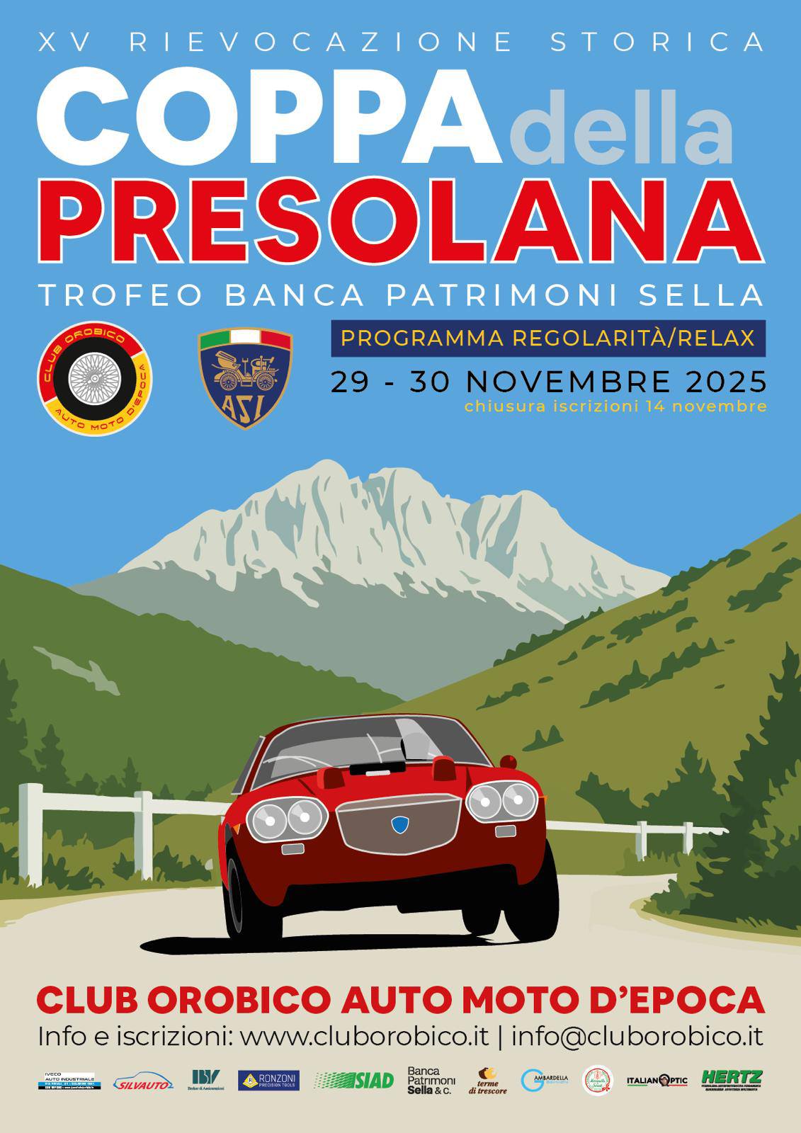 Il Club Orobico Auto Moto d’Epoca annuncia la 15esima Rievocazione Storica Coppa della Presolana - Trofeo Banca Patrimoni Sella, in programma per i giorni 29 e 30 novembre.