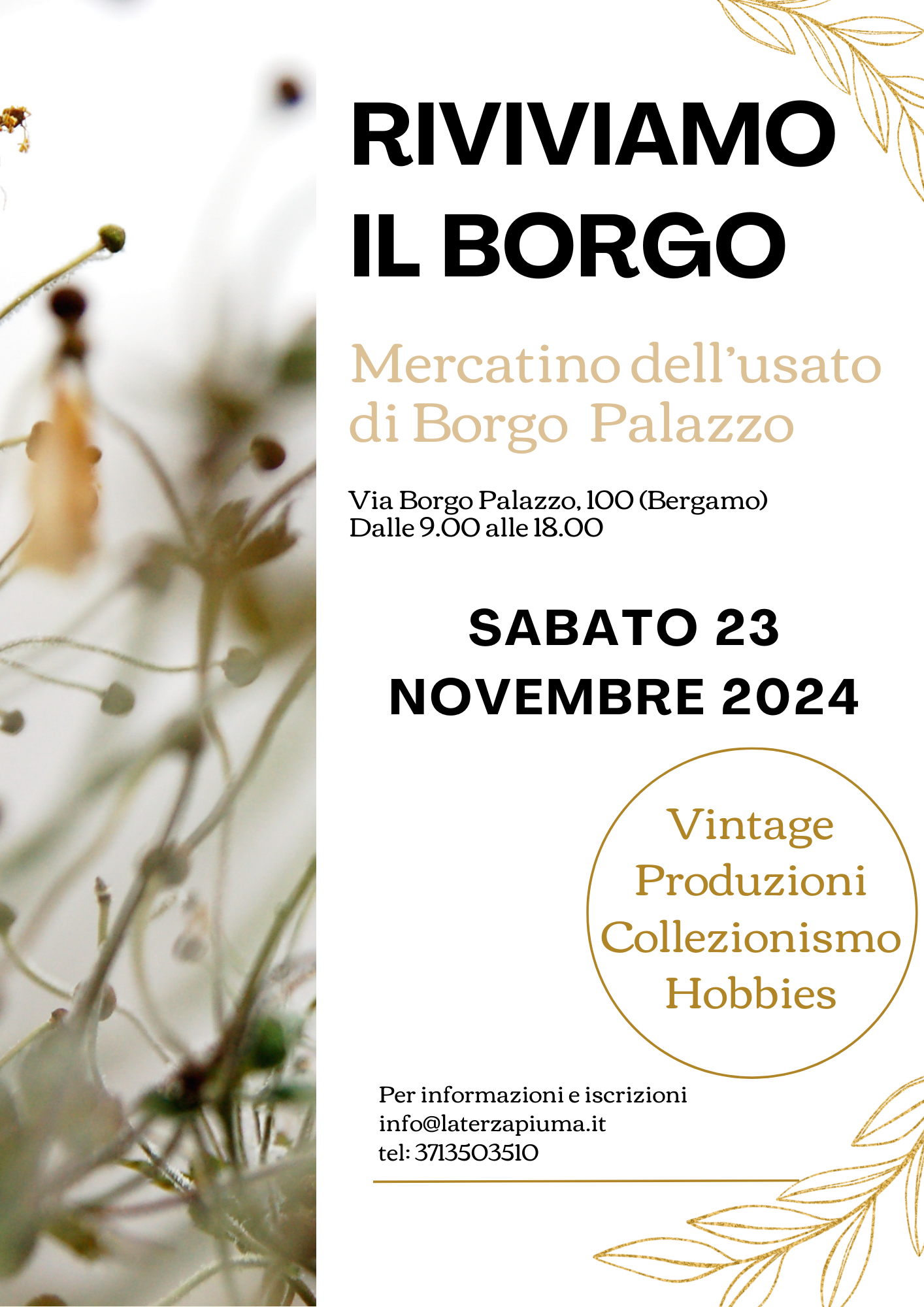 La Terza Piuma, ogni secondo e quarto sabato del mese, organizza a Borgo Palazzo il mercato dell'usato dove è possibile dare nuova vita a oggetti ancora in buono stato. La Piazzetta Rossa si trasforma in uno spazio non solo di vendita, ma anche e soprattutto di condivisione.