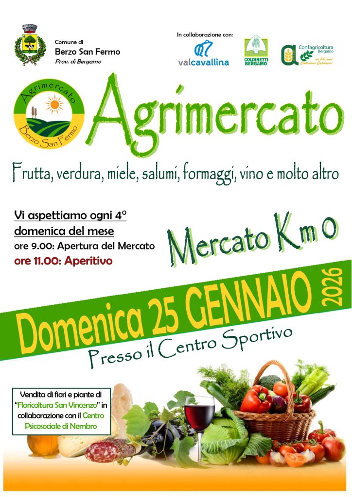 Mercato agricolo a Berzo San Fermo! Domenica mattina, andate a fare il pieno di prodotti freschi e a km zero! Frutta, verdura, formaggi, salumi e tanto altro.