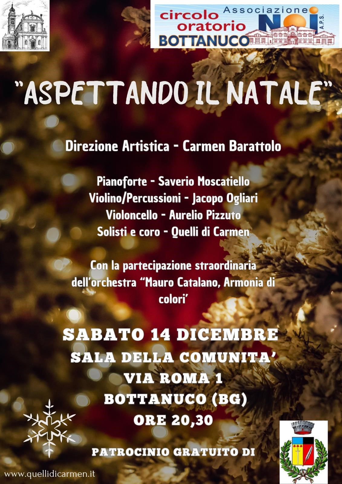 Quelli di Carmen presentano il Concerto di Natale a Bottanuco! Sabato 14 dicembre, alle 20:30, si terrà un concerto natalizio organizzato dall'associazione Quelli di Carmen. Talentuosi musicisti che eseguiranno un repertorio natalizio ricco di emozioni.