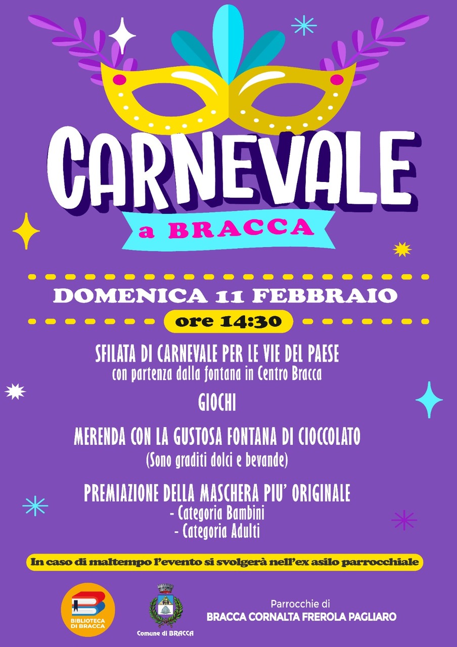 Domenica 11 febbraio alle 14:30 si terrà la sfilata di Carnevale per le via di Bracca.