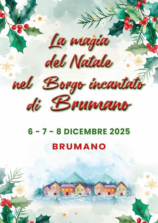 Il 6, 7 e 8 dicembre, Brumano si tinge di festa per il Ventennale dei Mercatini! Un'occasione per celebrare due decenni di tradizioni, sapori e magia natalizia.