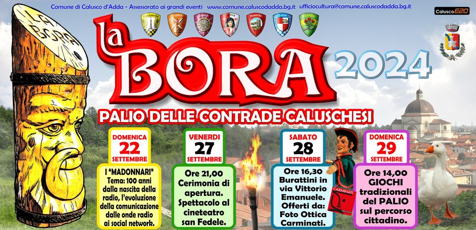 Dopo una parentesi durata 12 anni nella quale il palio non si รจ disputato, nel 2009 le 7 contrade Caluschesi si sono dotate di una nuova veste, hanno assunto un ruolo attivo nellโorganizzazione, sono diventate delle vere e proprie associazioni territoriali promuovendo cultura e aggregazione tutto lโanno e attivando una nuova edizione de La Bora, ora giunta, nella nuova versione, allโedizione numero 15, la piรน longeva della sua storia.