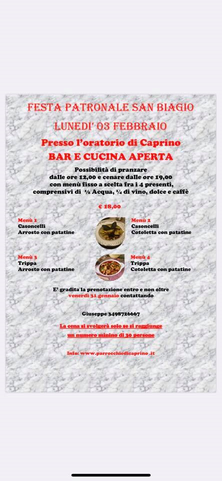 E' gradita la prenotazione entro e non oltre il 31 gennaio.