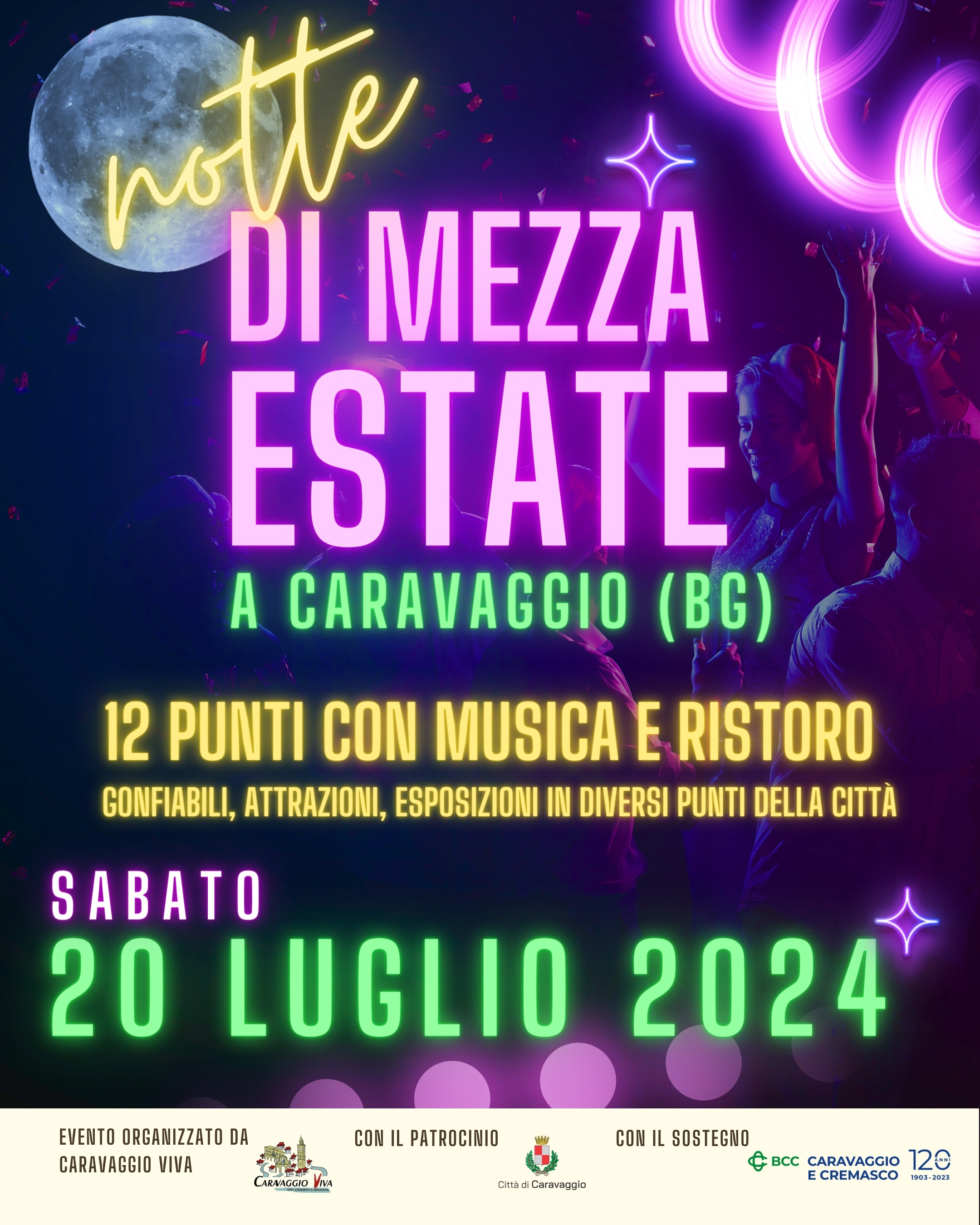 Sabato 20 luglio dalle ore 20.00 Caravaggio apre il centro storico alla festa, all'incontro e alla voglia di stare insieme.