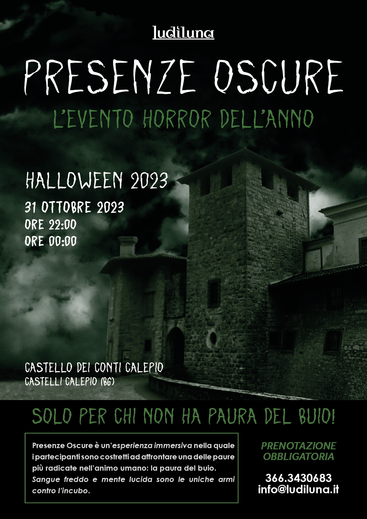 “Presenze Oscure” è un’esperienza immersiva, cioè un gioco di ruolo dal vivo, che impegnerà i partecipanti in una gara contro il tempo per risolvere tutti gli enigmi e liberare il Castello di Calepio dalle inquietanti creature della Dimensione Oscura.