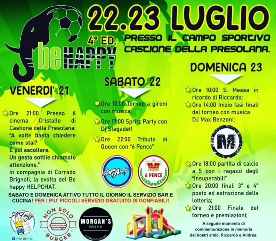 Torna presso il Centro Sportivo Parrocchiale di Castione "Be happy" con tante attività sportive e non, in un weekend ricco di divertimento, musica e tanto sport.