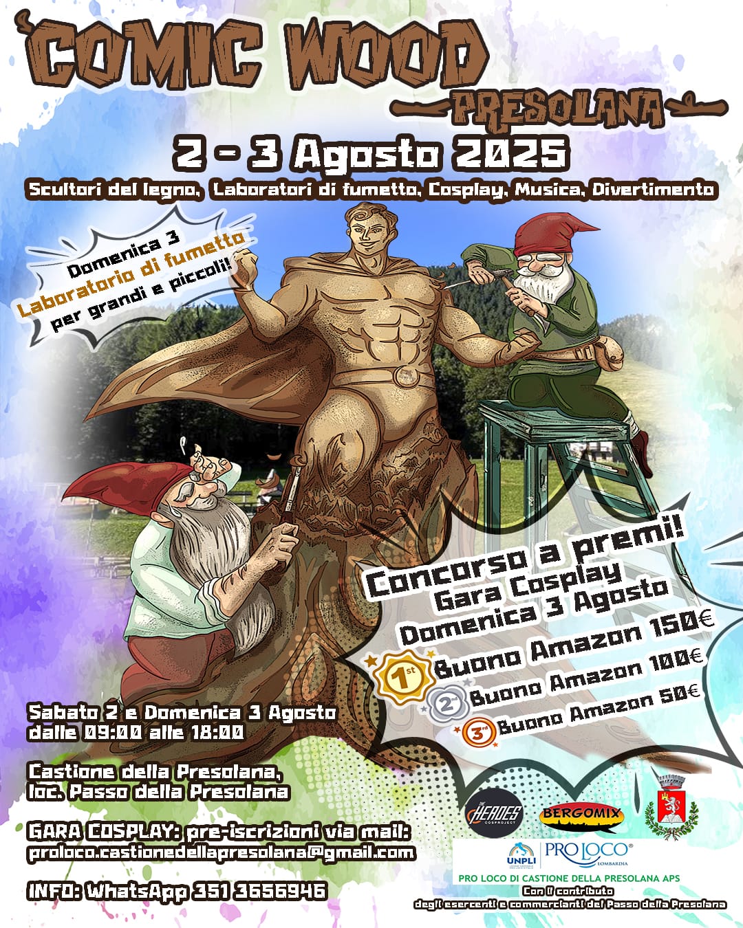 Un evento unico che unisce il mondo del fumetto e del cosplay con la tradizione della lavorazione del legno, immersi nella natura del Passo della Presolana. Cosa ti aspetta: