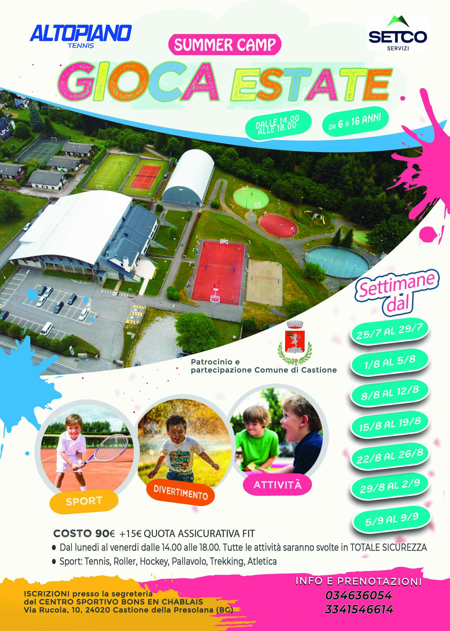 Altopiano tennis in collaborazione con Setco servizi organizza "Gioca estate"cen dal 25 luglio al 09 settembre presso il Centro sportivo comunale “Bons en Chablais”
