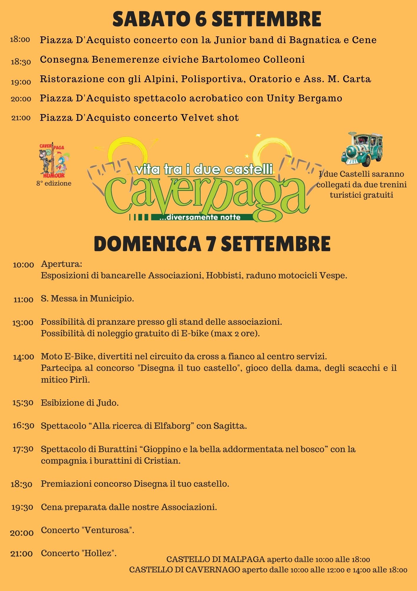 Due giorni di festa tra i castelli! In programma per «Caverpaga 2025» concerti, musica live, spettacoli, burattini, sport, mercatini, motori, tradizione e visite guidate!