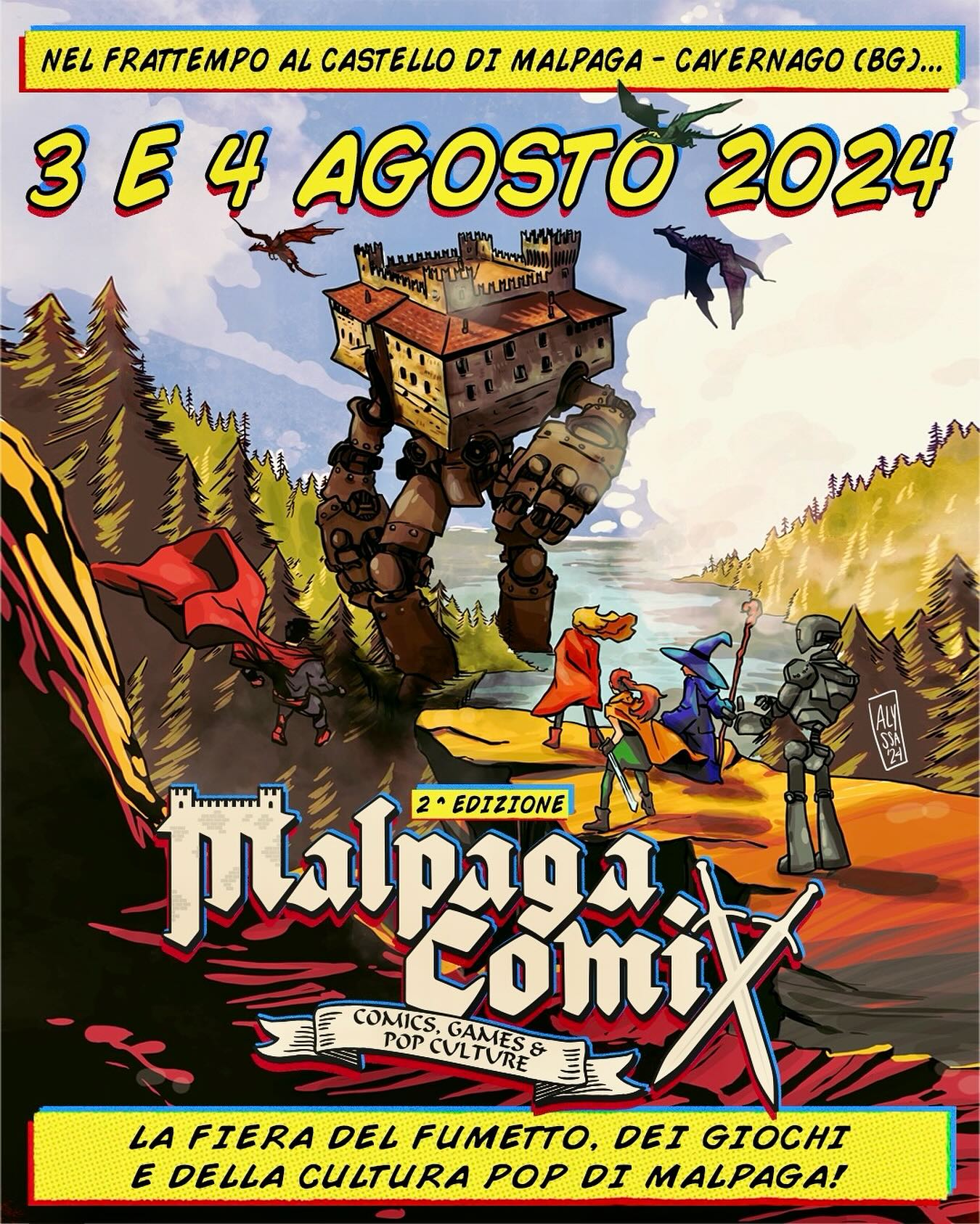 Sabato 3 e Domenica 4 agosto 2024 avrà luogo la seconda edizione di “Malpaga Comix”, la prima fiera del fumetto, dei giochi e della cultura pop in un borgo medievale presso l’antica Piazza d’Armi del Castello di Malpaga.