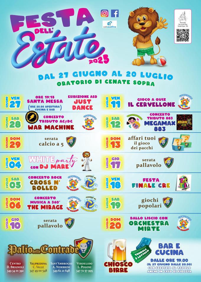 Torna a Cenate Sopra la «Festa dell'estate» dal 27 giugno al 20 luglio. Un vasto programma di appuntamenti per serate estive memorabili.