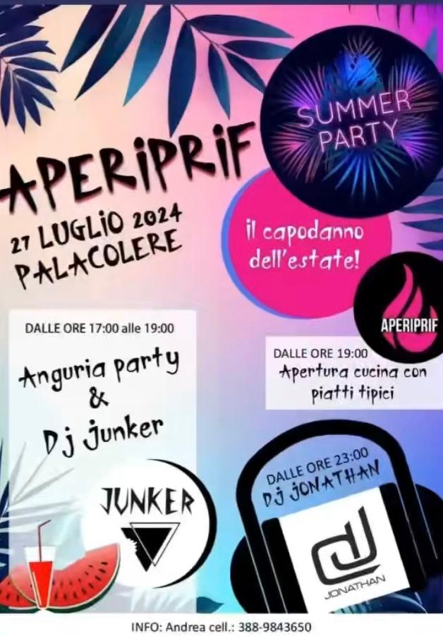 Torna, quest'estate, l'imperdibile festa estiva organizzata dal gruppo Aperiprif di Colere. La festa al Palacolere ( Presolana cultural forum ), avrร inizio con Anguria party e Dj set by Dj Junker.