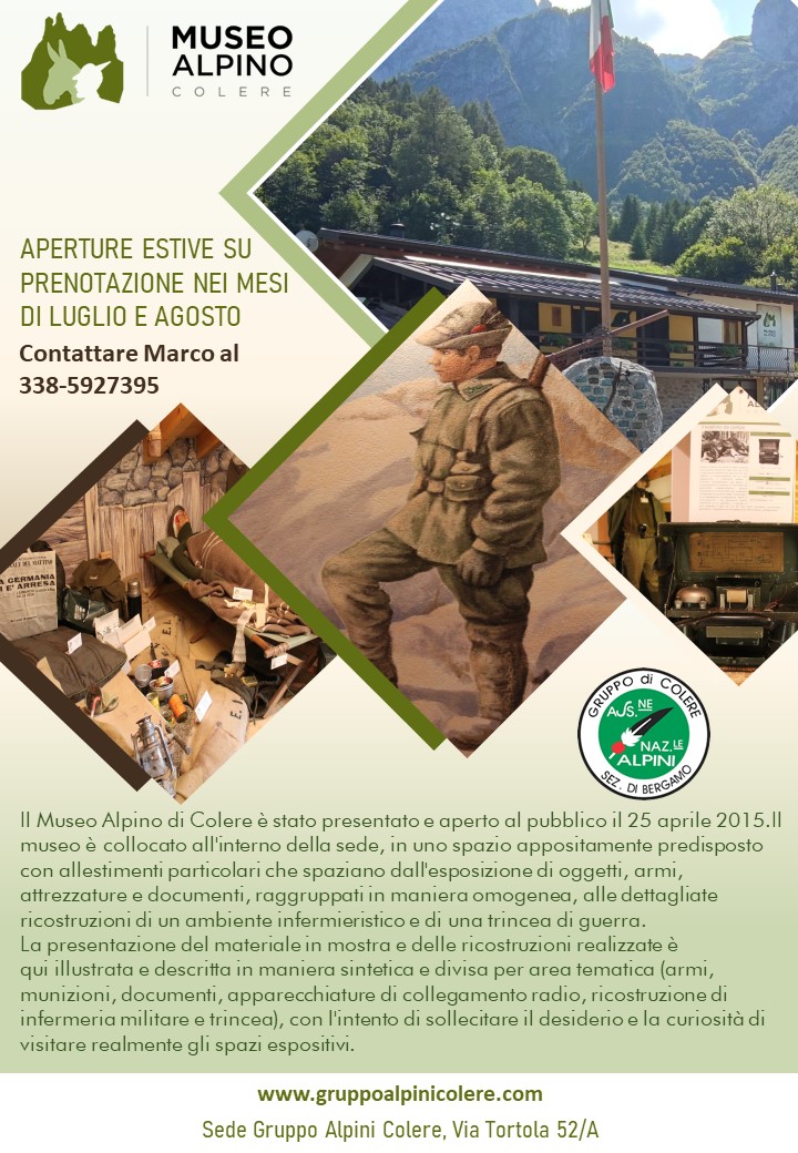Nei mesi di luglio e agosto il museo alpino di Colere sarà visitabile tramite prenotazione.