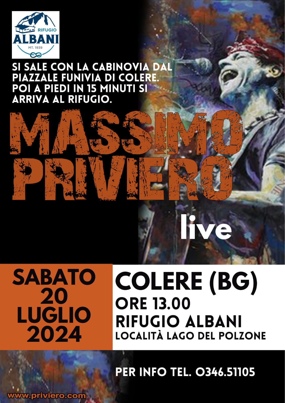 Un pomeriggio di musica dal vivo al rifugio Albani, con la band di Massimo Priviero. Il concerto si terrà al rifugio Albani, in località Lago del Polzone a Colere, a partire dalle ore 13.00.