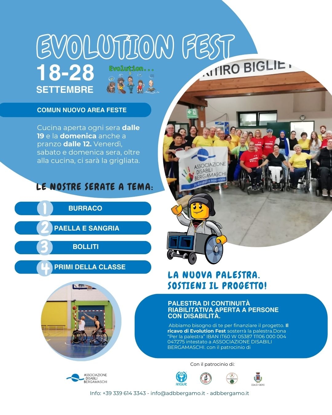 LโAssociazione Disabili Bergamaschi (ADB), organizzazione aderente alla Federazione, รจ lieta di presentare lโEVOLUTION FEST 2025, uno degli appuntamenti piรน attesi dellโanno, che unisce intrattenimento, sport e solidarietร . Lโevento si svolgerร dal 18 al 28 settembre a Comun Nuovo e sarร unโoccasione imperdibile per divertirsi e, allo stesso tempo, contribuire a una causa importante.