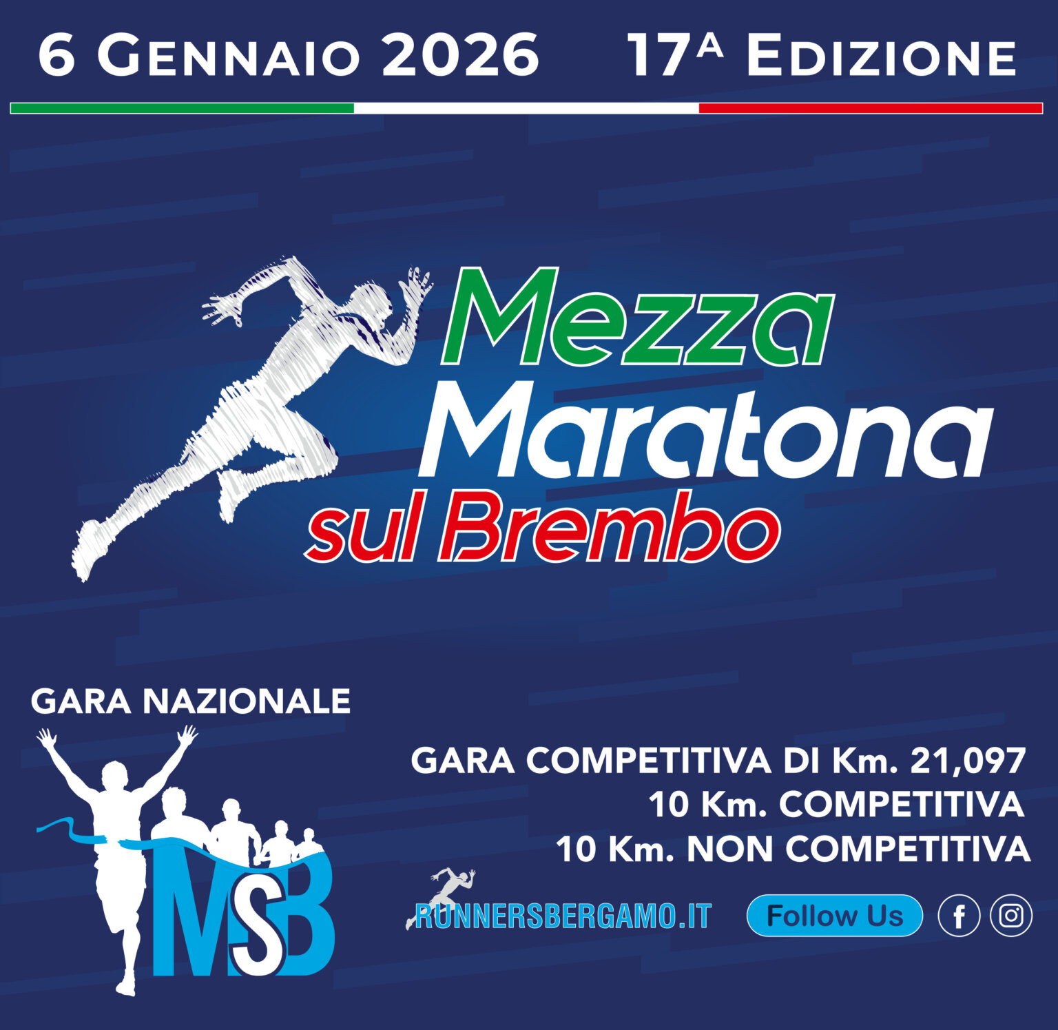 I Runners Bergamo inaugurano il 2026 con la Mezza Maratona sul Brembo, con gare agonistiche e non. L'evento inaugura la stagione sportiva e il calendario FIDAL. Sarà presente anche il campione Michele Palamini.