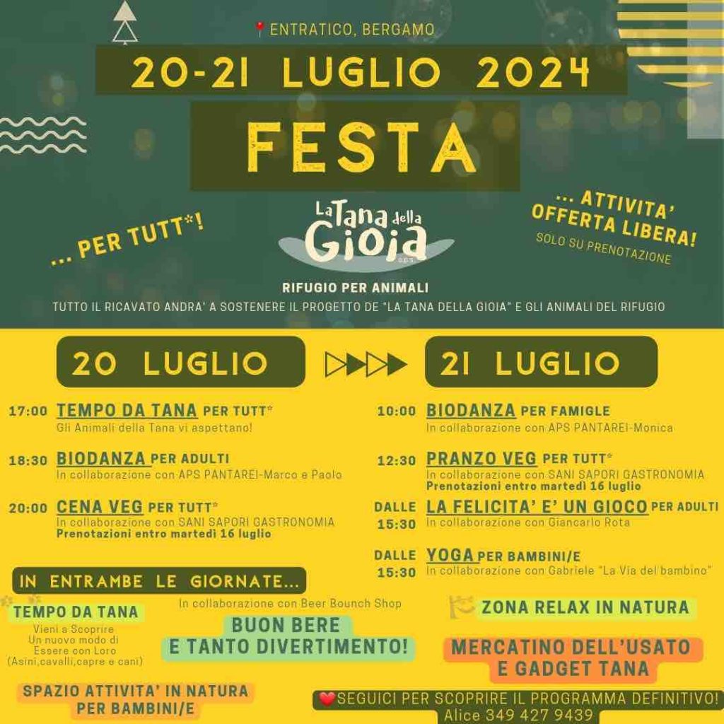 Nelle giornate di sabato e domenica 20 e 21 Luglio, potrete partecipare a tante e diverse attività, tra cui yoga per bambini, il mercatino dell’usato e gadget tana, attività con gli animali e molto altro.