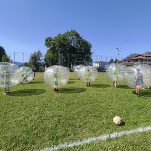 Partita di calcio all’interno di grosse bolle di gomma come autoscontri.