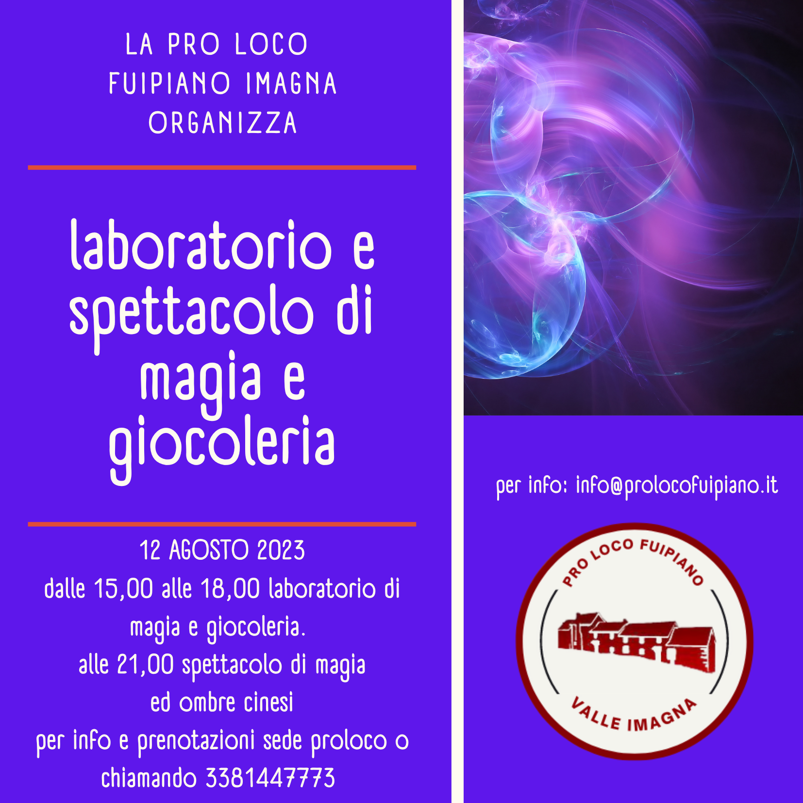 Continua la serie di eventi "Estate insieme a Fuipiano 2023": laboratorio di giocoleria e magia, per finire in serata con spettacolo di magia ed ombre cinesi.