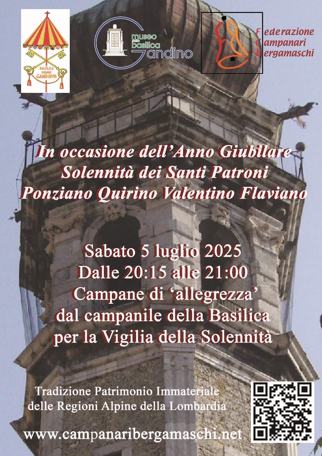In occasione dell’Anno Giubilare e della Solennità dei Santi Patroni della Comunità di Gandino, sabato 5 luglio 2025 si terrà un momento di intensa partecipazione e tradizione.