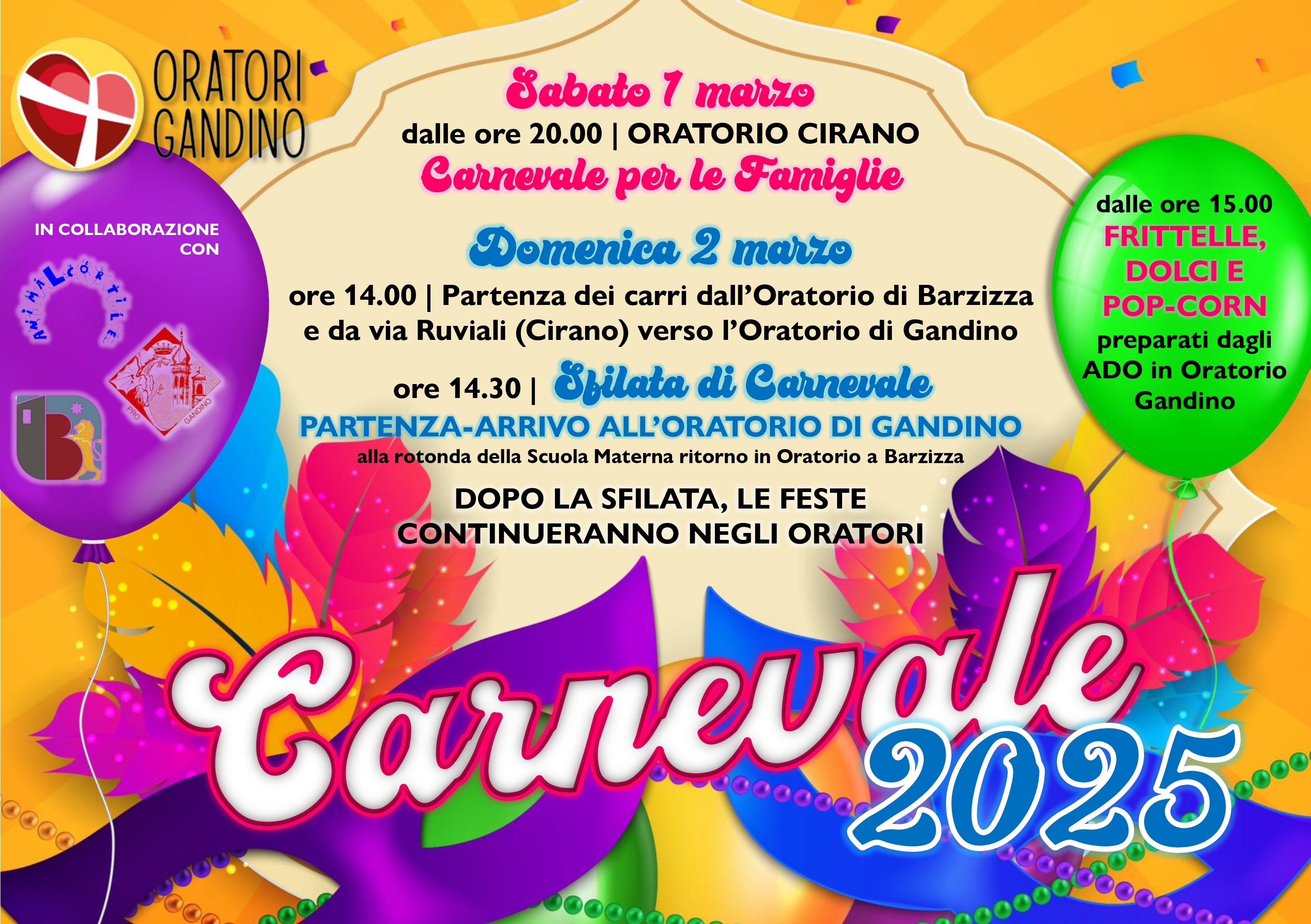 Anche quest’anno, il Carnevale porta gioia e colore a Gandino con un programma ricco di eventi per tutta la famiglia!