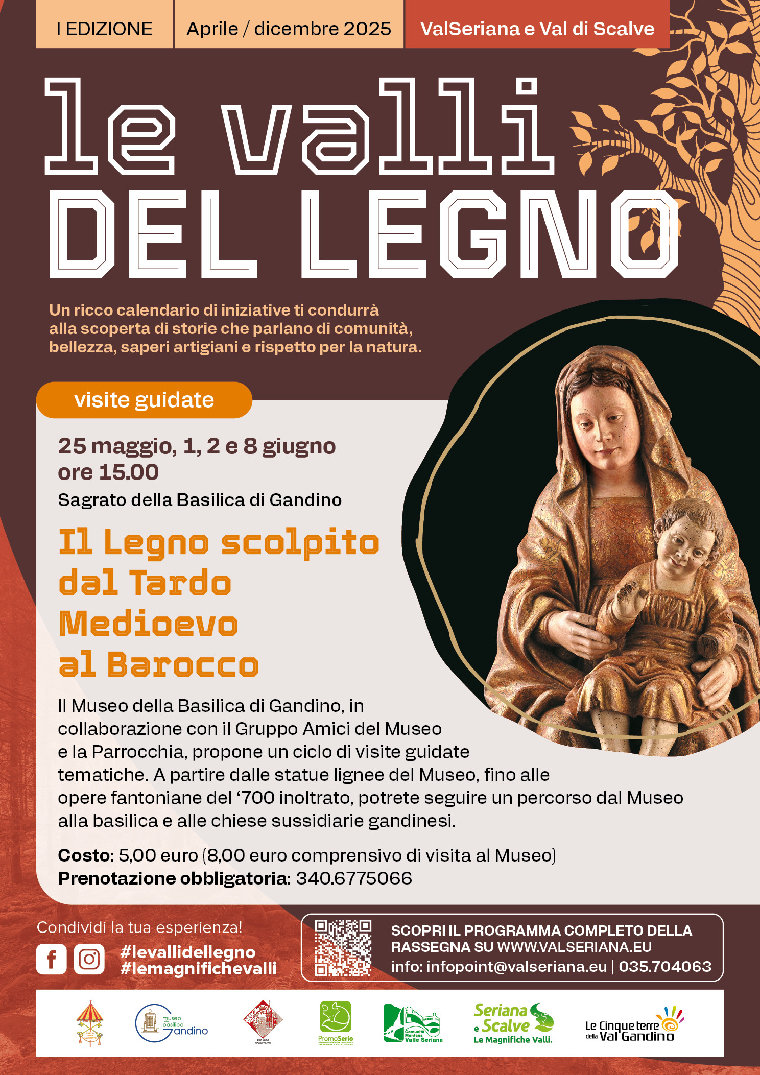 A partire dalle statue conservate nel Museo, fino alle opere di scuola fantoniana del Settecento inoltrato, il percorso accompagnerà i partecipanti alla scoperta di un ricco patrimonio artistico. Le visite si snoderanno dal Museo alla Basilica e alle chiese sussidiarie di Gandino, offrendo uno sguardo approfondito sulla devozione, la bellezza e le abilità artigianali che hanno segnato la storia del territorio.