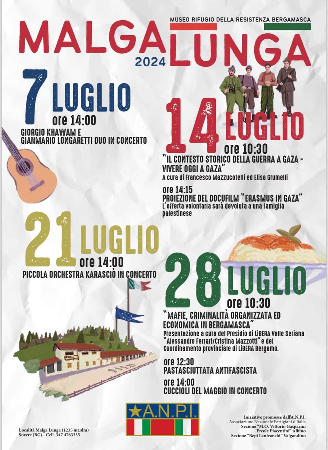In occasione dell'ultima giornata dell'edizione 2024 di Malga Lunga, domenica 28 luglio sono in programma un intervento sulla mafia, pranzo antifascista e concerto di "Cuccioli del Maggio".