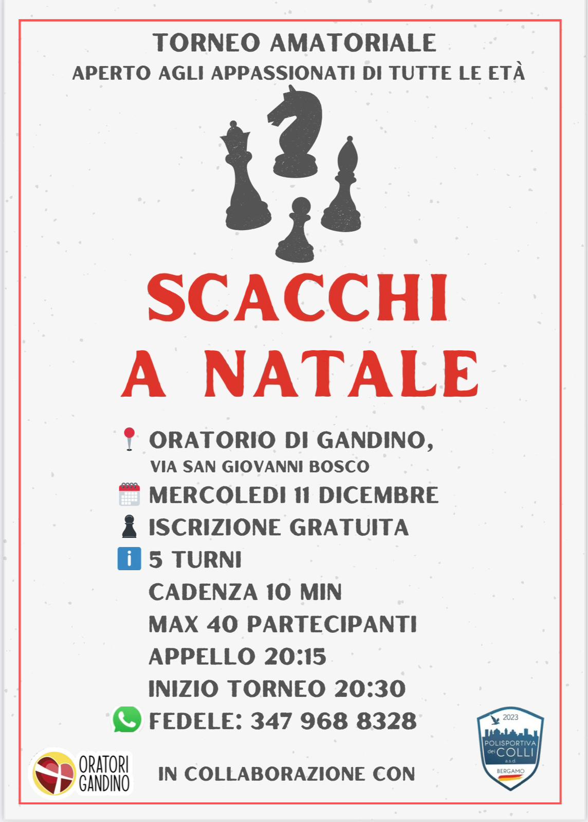 Se sei un appassionato di scacchi, non perdere l’occasione di partecipare al torneo amatoriale Scacchi a Natale, aperto a giocatori di tutte le età!