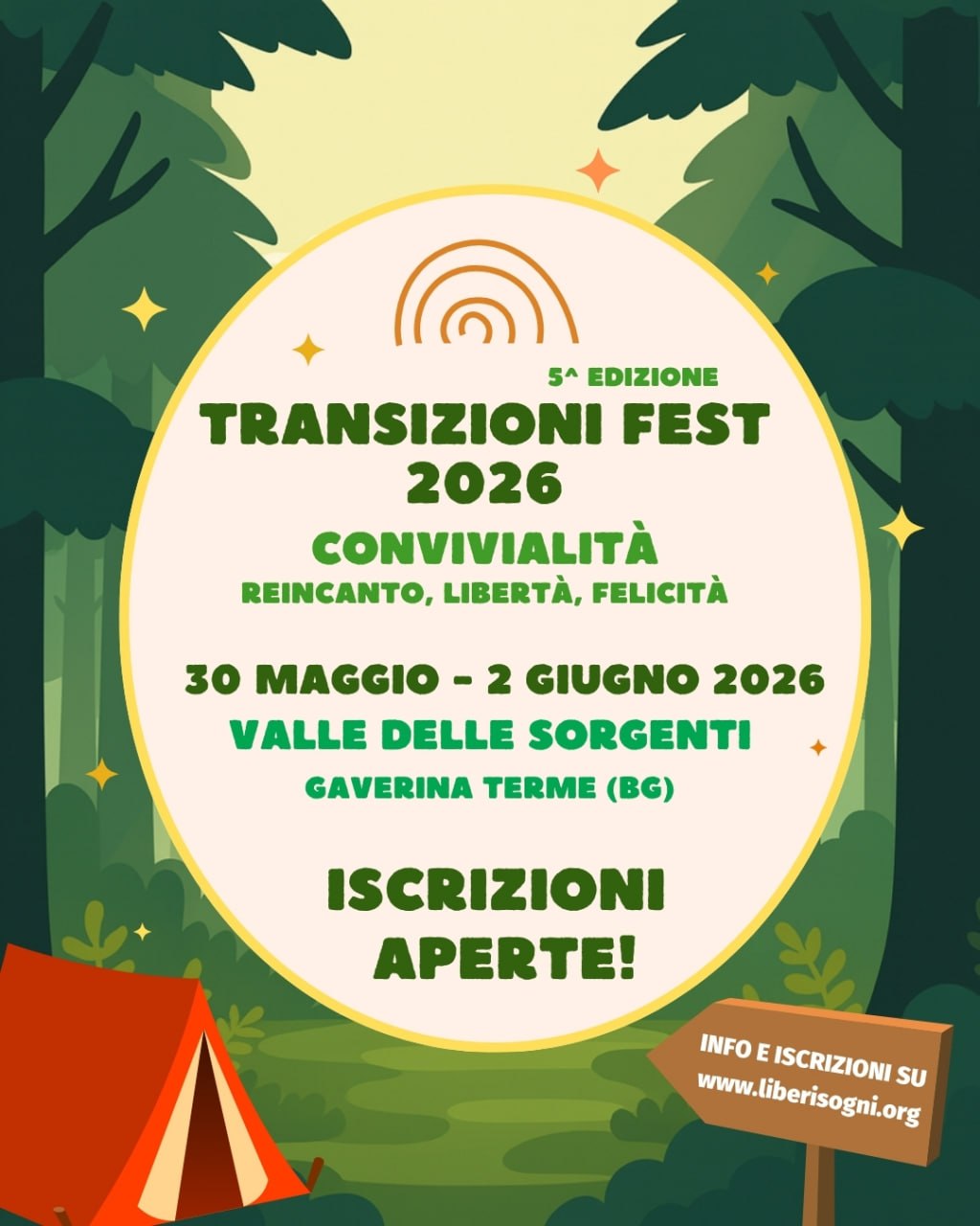 Nella sua prima edizione itinerante, ยซTransizioni Fest 2026ยป si terrร alla Valle delle Sorgenti, uno splendido bioparco in Val Cavallina per quattro giornate guidate dal tema di fondo che accompagnerร tutto il viaggio: la CONVIVIALITร.