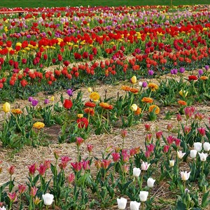 Da metà marzo e per tutto aprile, ai Campi Bassi sbocciano 70mila tulipani in oltre 110 varietà. Sarà possibile scegliere e raccogliere i fiori, tra filari bianchi e rosa.