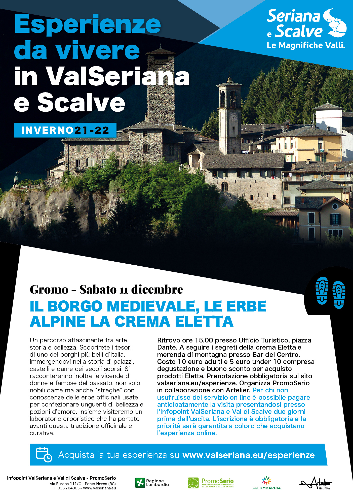 Il borgo medievale, le erbe alpine e la crema Eletta
