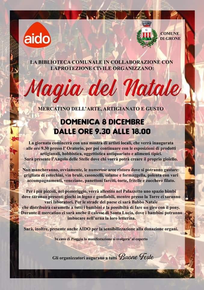 In programma per i mercatini di Natale di Grone una giornata tutta da vivere tra arte, musica, handmade, buon cibo e tanti giochi.