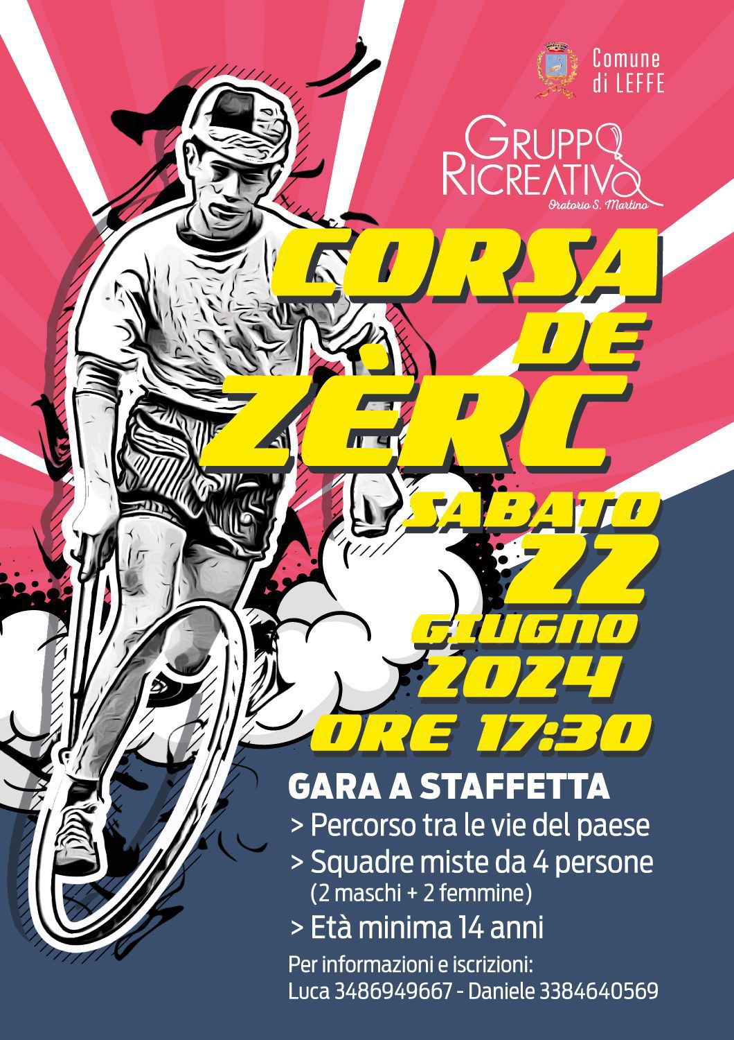 Sabato 22 giugno 2024 torna a Leffe la โCorsa de Zercโ, organizzata dal Gruppo Ricreativo dellโOratorio. Iscrizioni dai 14 ai 99 anni presso il numero 348.6949667 entro il 20 giugno 2024.